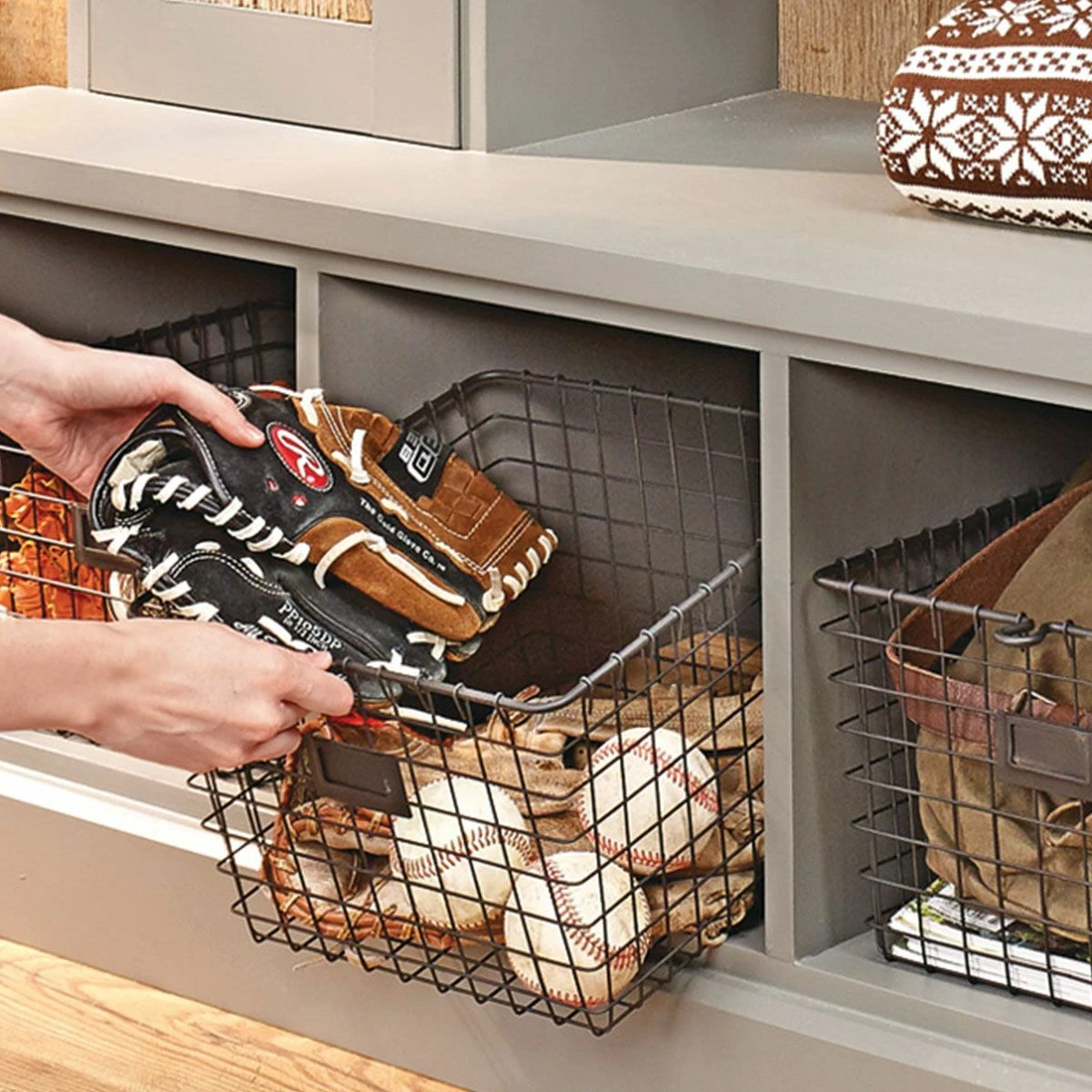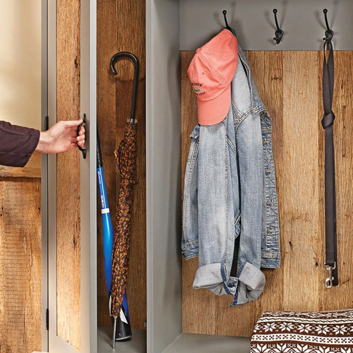 This stylish project uses old barn boards to accent the painted finish… It’s a beautiful place to organize the clutter in your entryway.