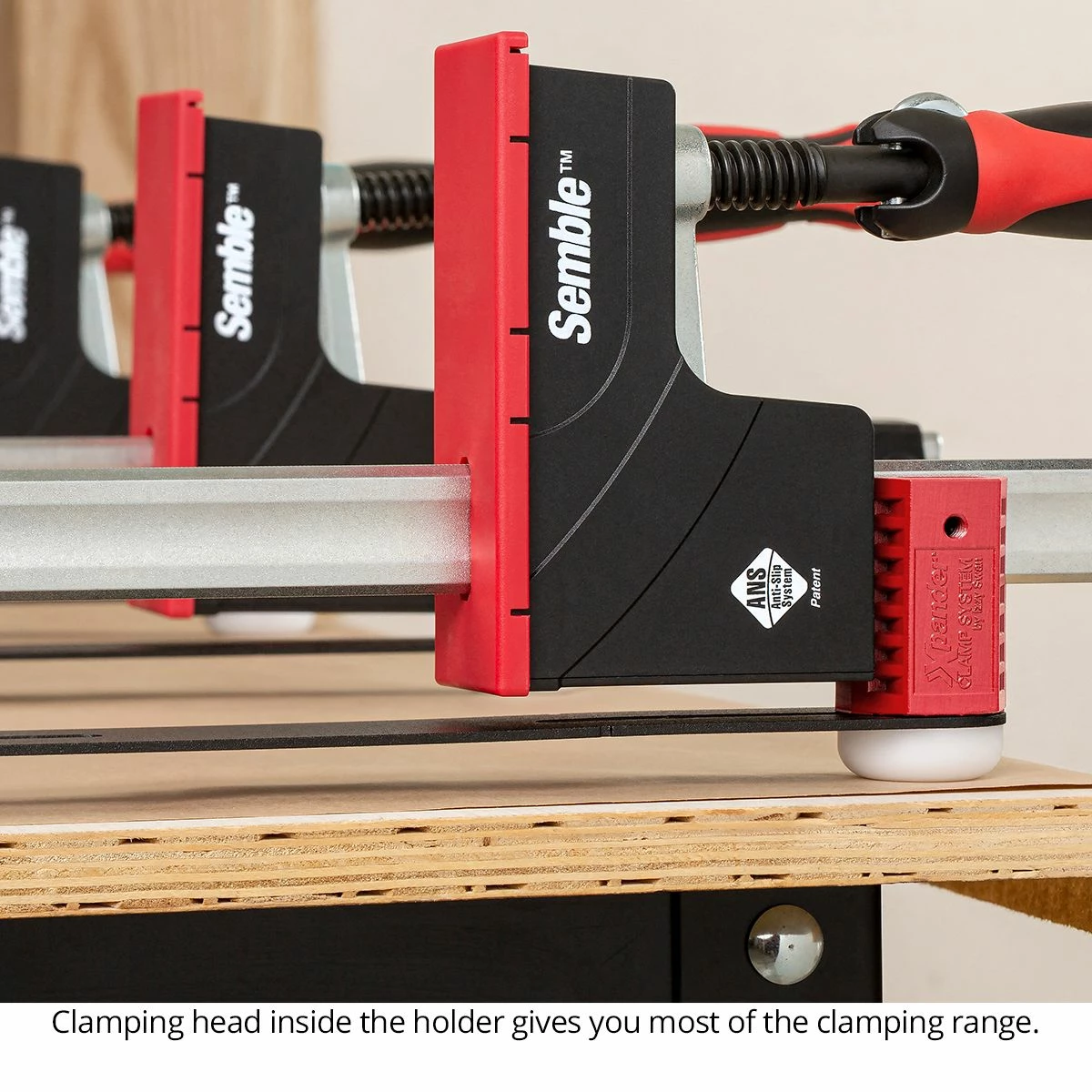 Both models give you the full range of your clamps. The clamping head can easily move from inside the bar holder to outside the bar holder, and the bar holder itself adjusts 5″. This means there are no “dead spots”. You can squeeze every inch out of your clamps’ capacity.